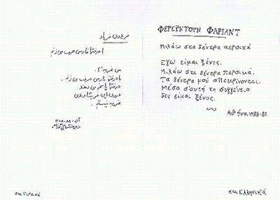 Φερεϊντούν Φαριάντ, Περσία 1984 – Μετάφραση Γιάννη Ρίτσου (εκδ. Κέδρος)