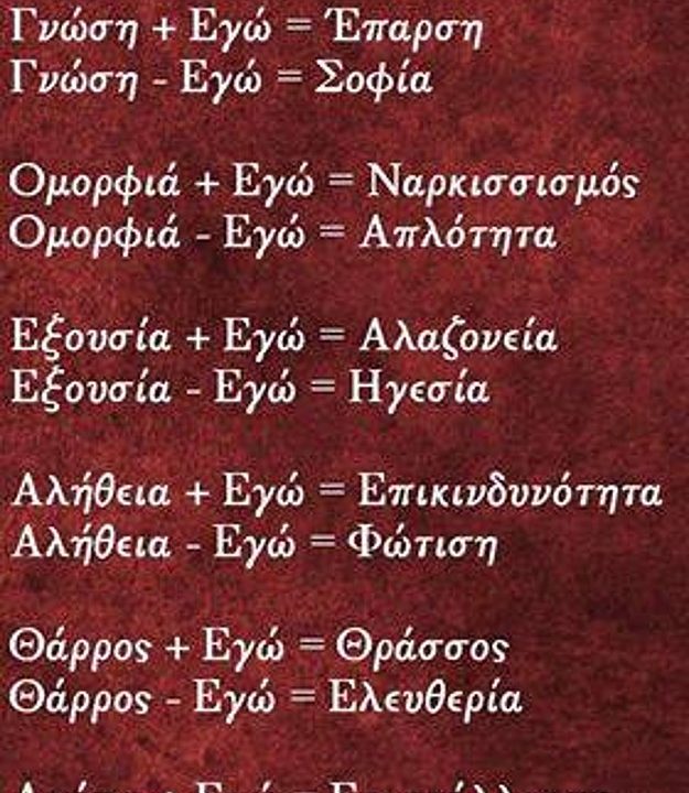 Η γνώση με εγωκεντρισμό είναι δογματισμός.  Η γνώση με αυτοεκτίμηση είναι σοφία. Η ομορφιά με εγωκεντρισμό είναι ναρκισσισμός. Η ομορφιά με αυτοεκτίμηση είναι αρμονία.  Η εξουσία […]