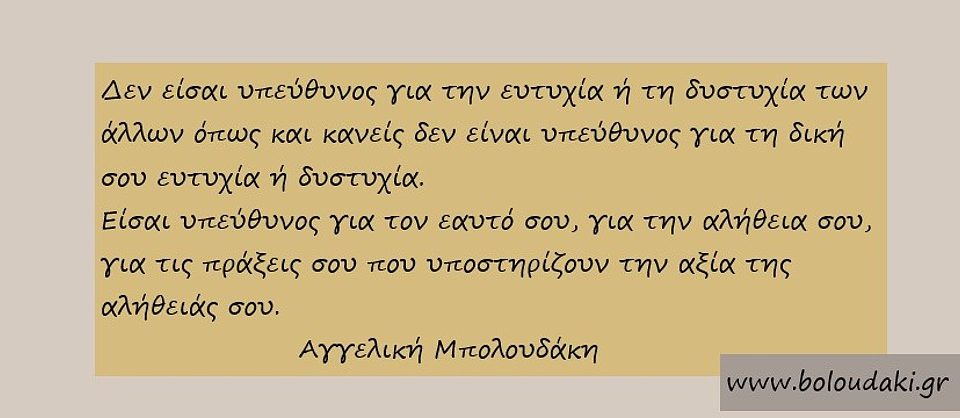 Είμαστε υπεύθυνοι για τον εαυτό μας, για την αλήθεια μας, για τις πράξεις μας που υποστηρίζουν την αξία της αλήθειας μας