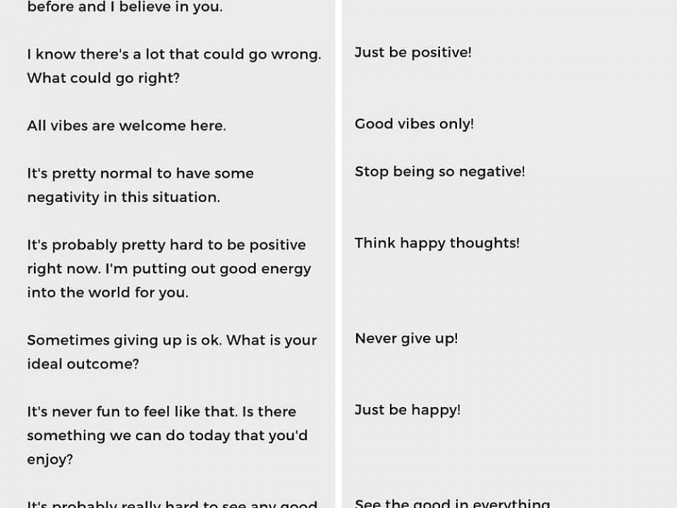 Μην λες: Θα το ξεπεράσεις. Πες: Αυτό είναι δύσκολο. Έχεις αντιμετωπίσει δυσκολίες στο παρελθόν και πιστεύω σε σένα. Μην λες: Να είσαι απλά θετικός. Πες: Γνωρίζω […]